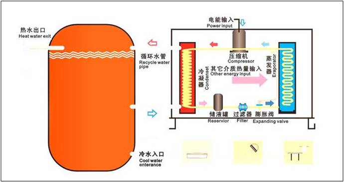 空氣能熱泵熱水器也稱“空氣源熱泵熱水器”“熱泵熱水器”“空氣能熱水器” 等。空氣能熱泵熱水器(空氣源熱泵熱水器)中的熱泵能把空氣中的低溫?zé)崮芪者M(jìn)來,經(jīng)過壓縮機(jī)壓縮后轉(zhuǎn)化為高溫?zé)崮埽訜崴疁亍_@種熱水器(空氣源熱泵熱水器)具有高效節(jié)能的特點(diǎn),其耗電量是同等容量電熱水器的1/4,是燃?xì)鉄崴鞯?/3。空氣能熱泵熱水器(空氣源熱泵熱水器)的初期投資是煤氣、天然氣、電熱水器的三至五倍,但其日常運(yùn)行成本較低。